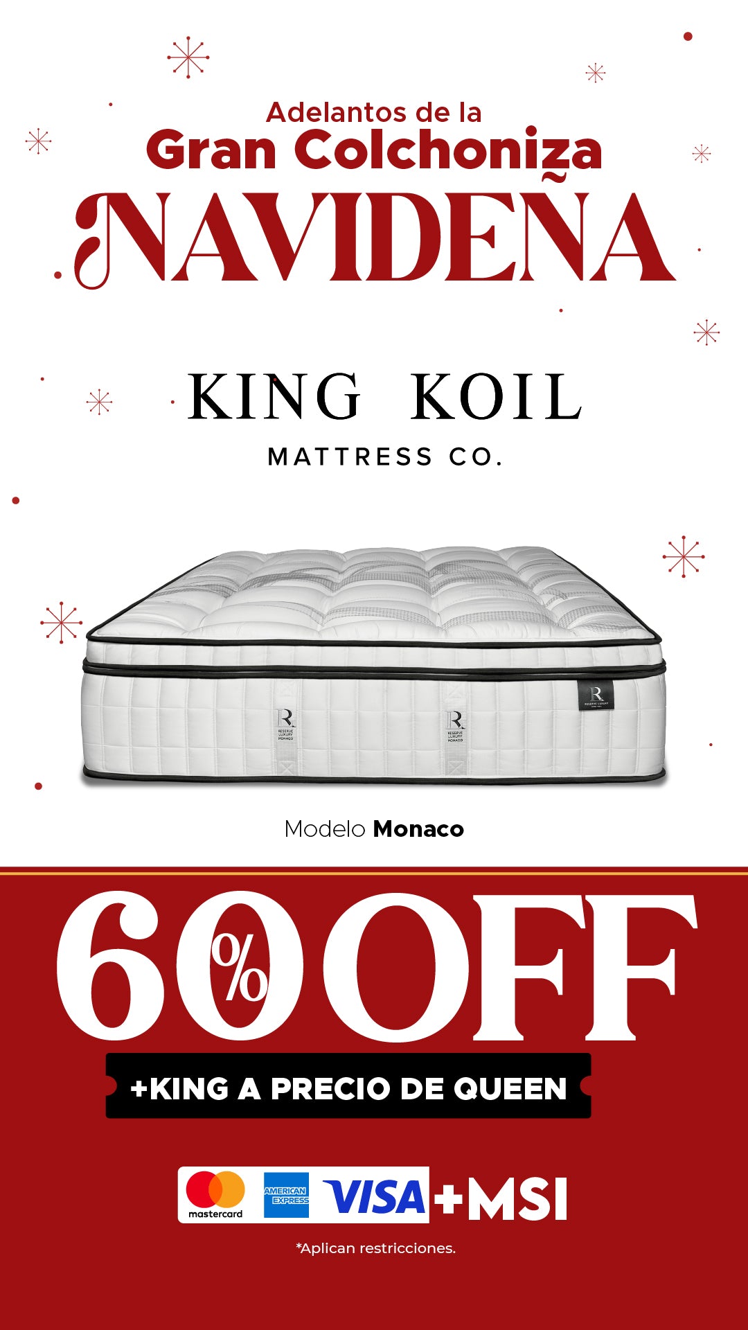 El tamaño del colchón depende de varios factores, tales como estatura, edad, peso, si se duerme en pareja o solo. Te recomendamos consultar en nuestro chat o en cualquiera de nuestras tiendas, nuestros asesores estarán felices de ayudarte a elegir la mejor opción para ti.