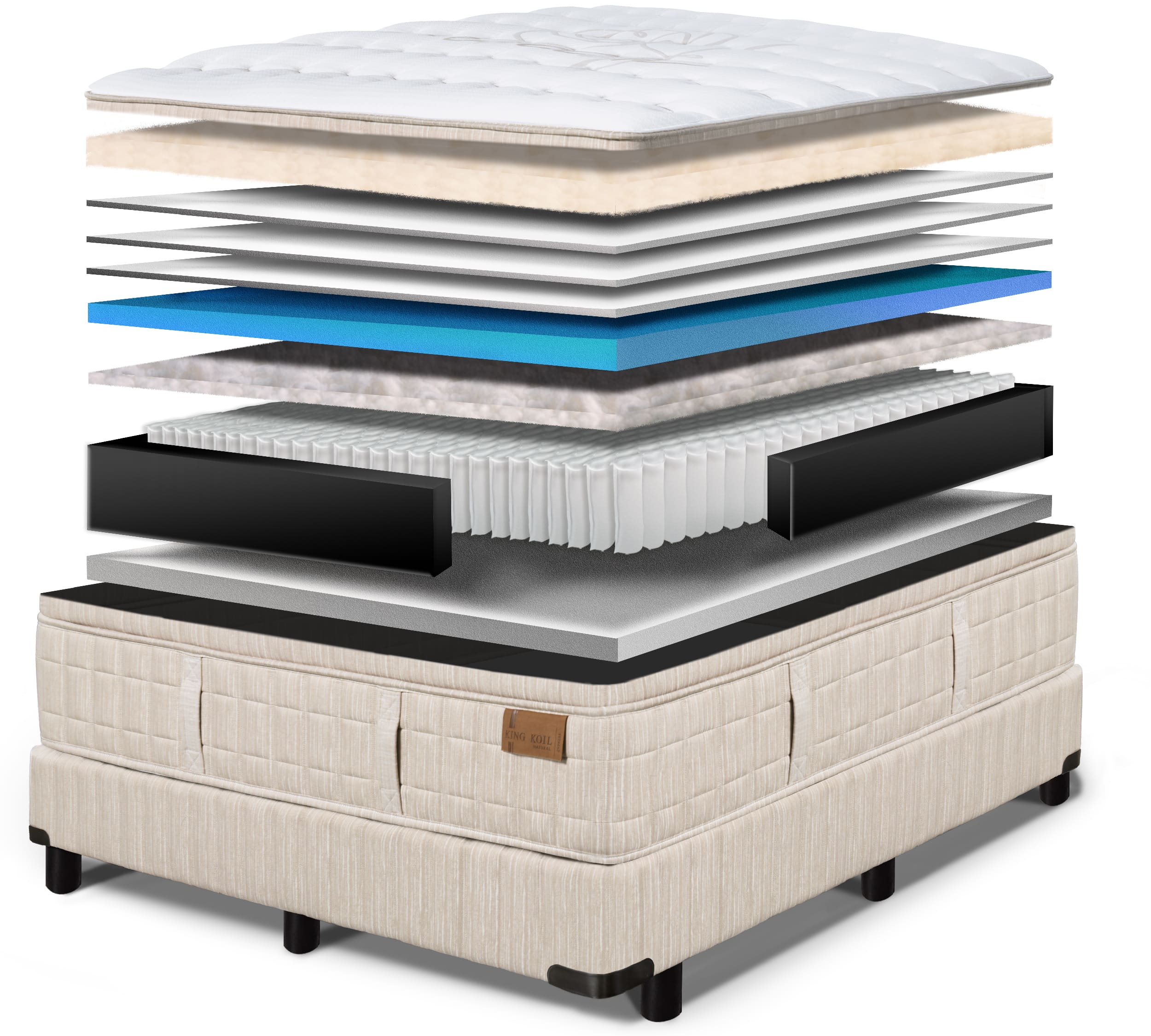 - King Koil HR foam: Espuma de poliuretano de alta densidad proporciona un soporte espectacular y durabilidad.